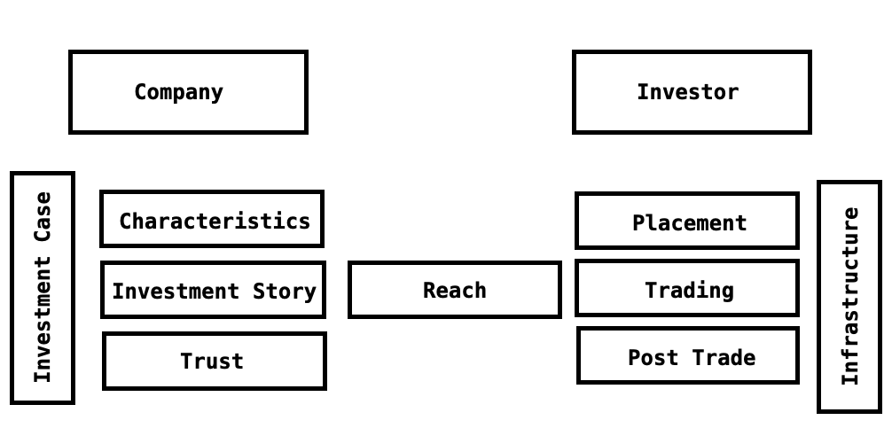Reach: This answers the question, "Who could be interested in this?" It's a function of the investors who can invest (based on the mandate), those who are willing (based on the investment story and trust), and ultimately, the ability to know who they are and reach them. This brings up an issue of information asymmetry and the subsequent challenge of matching supply and demand on a truly global scale.